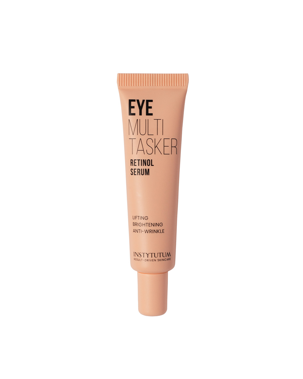 INSTYTUTUM EYEMULTITASKER Retinol Serum — це високоефективна сироватка нового покоління для догляду за шкірою навколо очей. Створена на основі 5% гранактивного ретиноїду, вона комплексно впливає на всі основні прояви вікових змін: розгладжує зморшки, зменшує темні кола, освітлює пігментні плями та помітно покращує тонус і пружність шкіри. Завдяки поєднанню активних компонентів, засіб забезпечує видимий ліфтинг-ефект, включаючи підтягнення верхніх повік.